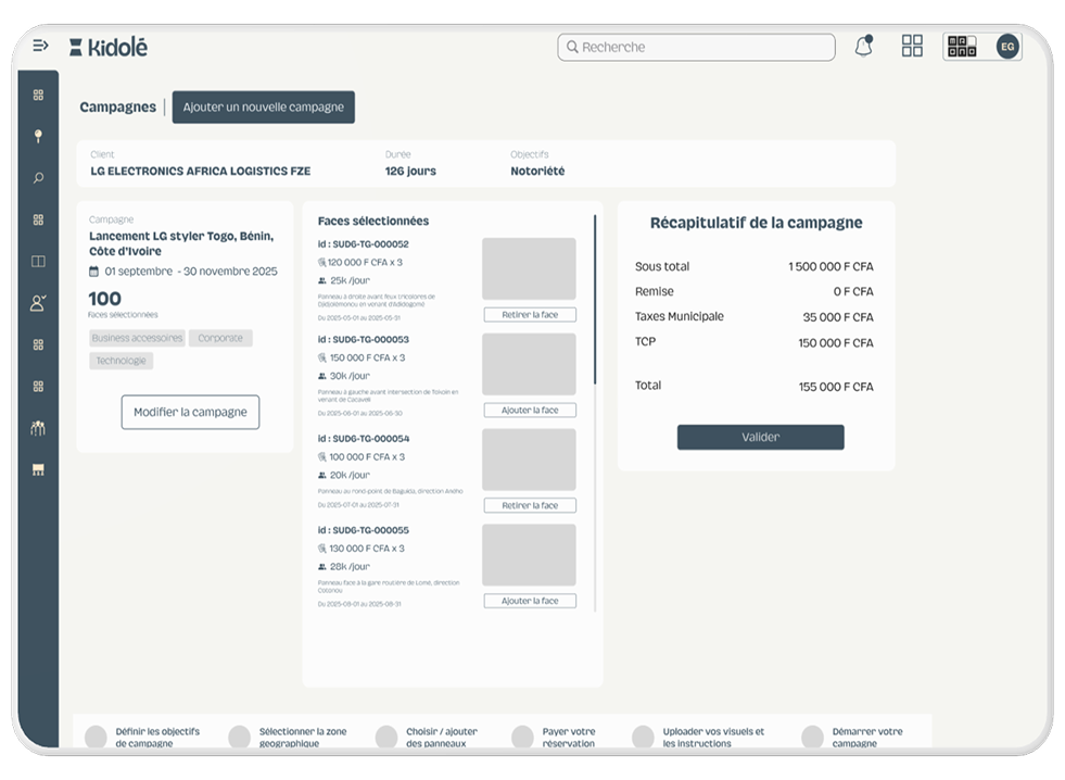 Première plateforme africaine qui simplifie la gestion et la réservation des panneaux, Kidolé va revolutionner l'écosystème des affiches publicitaires en Afrique, apportant ainsi plus de structure au marché.